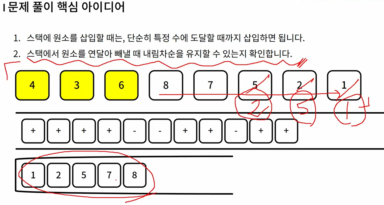 2번 조건이 만족되지 않는다면, 해당 수열은 stack에 더하고 빼기로는 만들 수 없는 수열이라는 뜻이다.